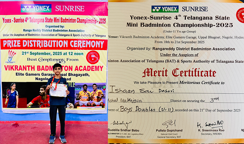 Ishaan Sai Wins Bronze at TS Badminton 2025🏆