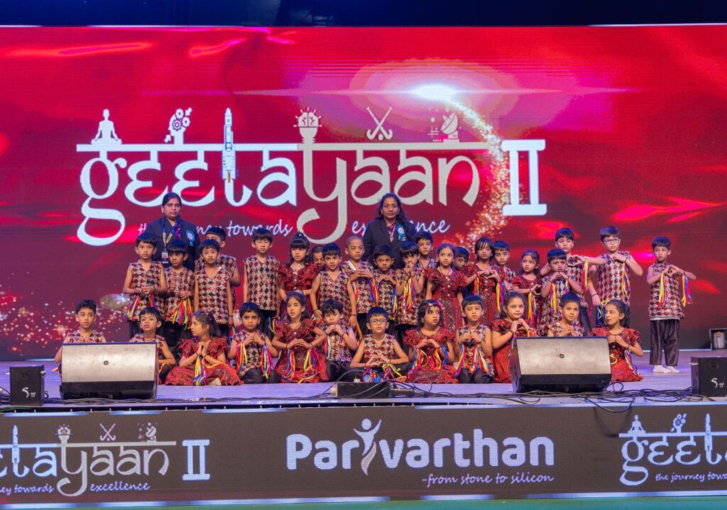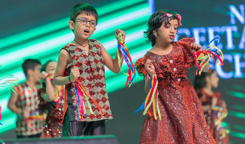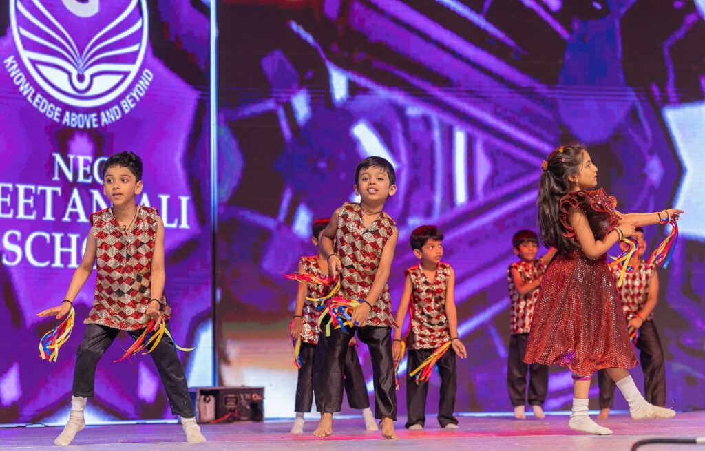 Tiny voices and bright smiles filled the stage as our Grade-1 students joyfully presented the “Enjoying Life” song during the Annual Day Celebrations 2025 at Neo Geetanjali Schools. Their cheerful expressions, innocent enthusiasm, and lively performance won everyone’s hearts. 🌈👏