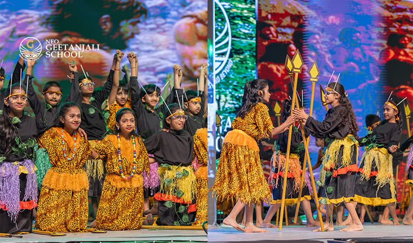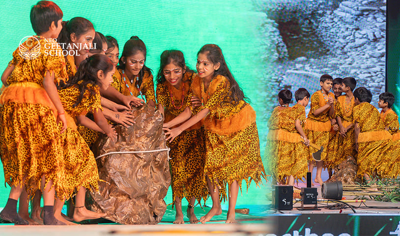 Creativity and imagination took center stage as our Grade 4 students presented the engaging “Stone Age” performance during the Annual Day Celebrations 2025 at Neo Geetanjali Schools. Through expressive movements, storytelling, and thematic presentation, students depicted early human life and evolution in a captivating way. 🌍✨